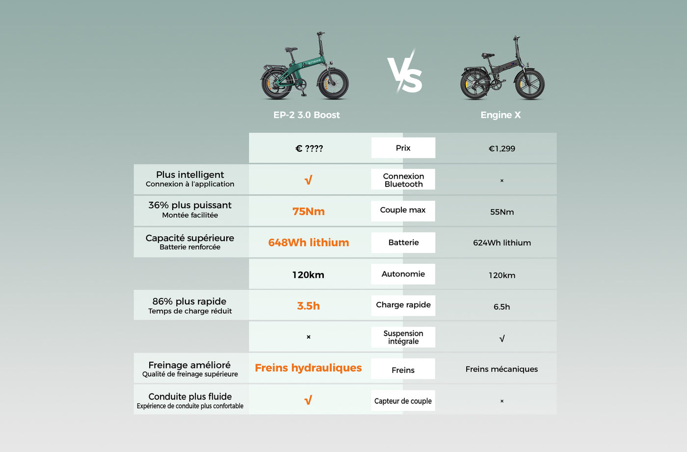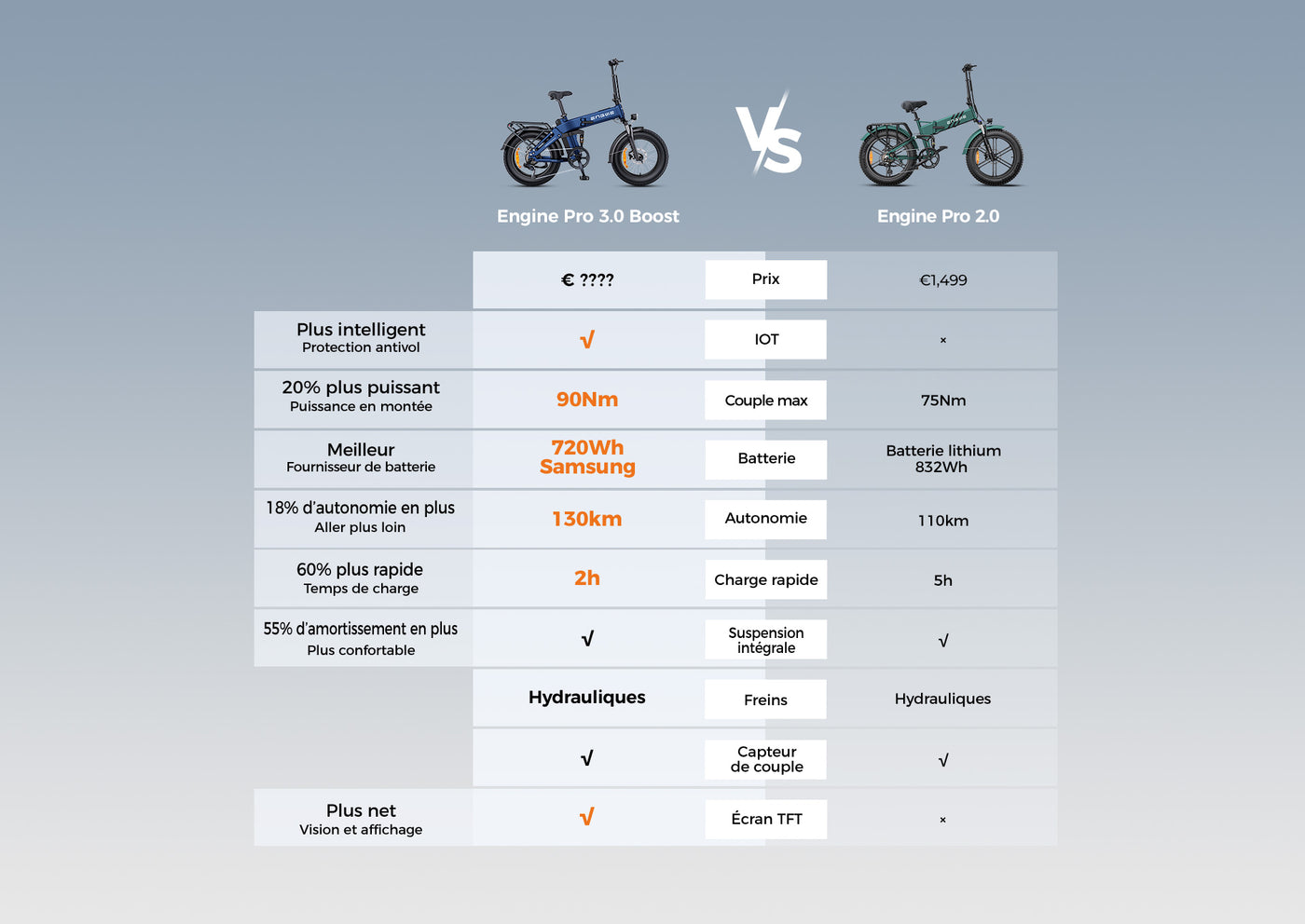 Le Engine Pro 3.0 Boost embarque notre couple boosté le plus puissant de 90 Nm — idéal pour grimper, accélérer rapidement et affronter n’importe quel terrain.