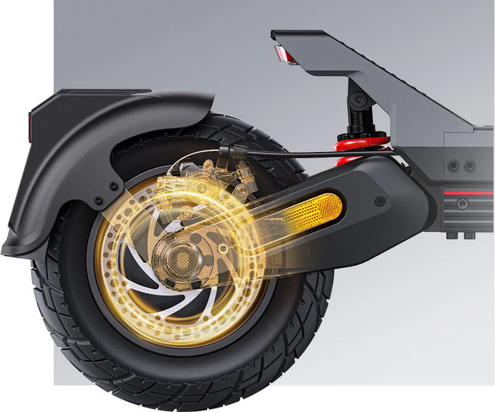 Des systèmes de freinage hautes performances à l'avant et à l'arrière offrent une force de freinage linéaire et puissante. Maintient la stabilité même sur les routes humides, garantissant un freinage sûr dans toutes les conditions.