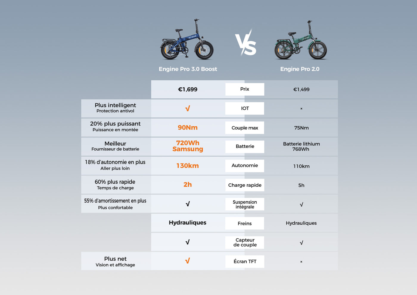 Votre Engine Pro 3.0 Boost s’améliore au fil du temps grâce aux mises à jour automatiques OTA – nouvelles fonctionnalités et améliorations accessibles partout, à tout moment.
