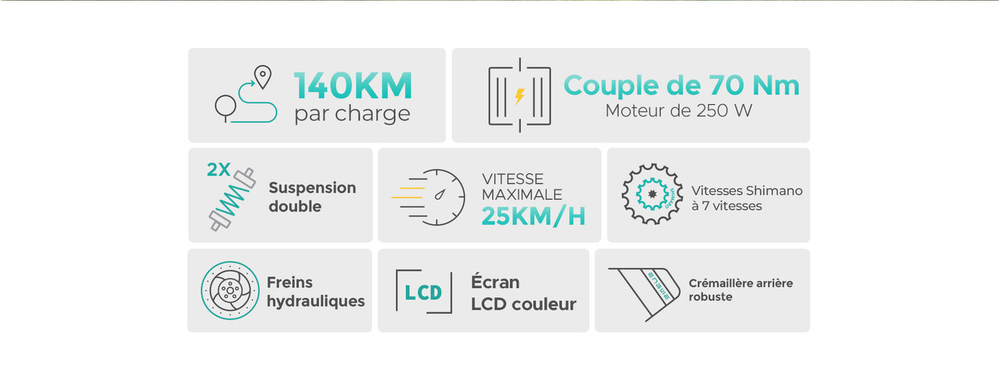 Vélo électrique tout terrain à suspension double 250W autonomie 140 km