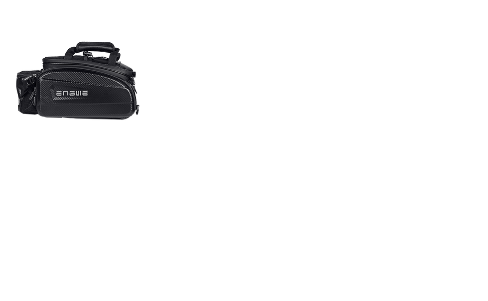 Fabriquée en cuir composite de carbone résistant à l'eau, la sacoche de coffre ENGWE est pliable et se transforme en sacoche pour un rangement supplémentaire. Elle est dotée de bretelles pour une utilisation en bandoulière, et son intérieur rembourré réduit les chocs. Fabriquée en polyester 420D résistant et en tissu Oxford imperméable, elle est facile à nettoyer et idéale pour le vélo. Veuillez noter que la sacoche de porte-bagages arrière de 35 L n'est pas compatible avec les modèles ENGWE M20 et ENGWE X (X20/X24/X26).