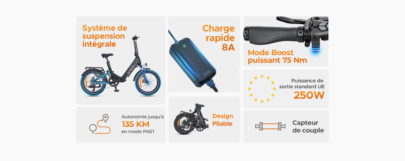 Appuyez sur le bouton Boost pour une accélération instantanée. Que vous doubliez, gravissiez des côtes ou recherchiez simplement des sensations fortes, le mode Boost vous offre une puissance immédiate, comme si vous conduisiez une supercar à deux roues.